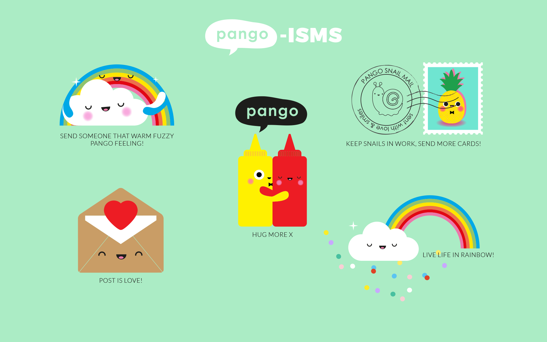 She sent them to pen pals, friends, family, and anyone who loved to smile. For pocket money, Cindy sold her wondrous creations to local shops and called her range “Pango Productions.” Cindy grew up loving colour and simple lines and would make playful characters out of them. Her imagination tugged at her sleeve, begging to run amok...